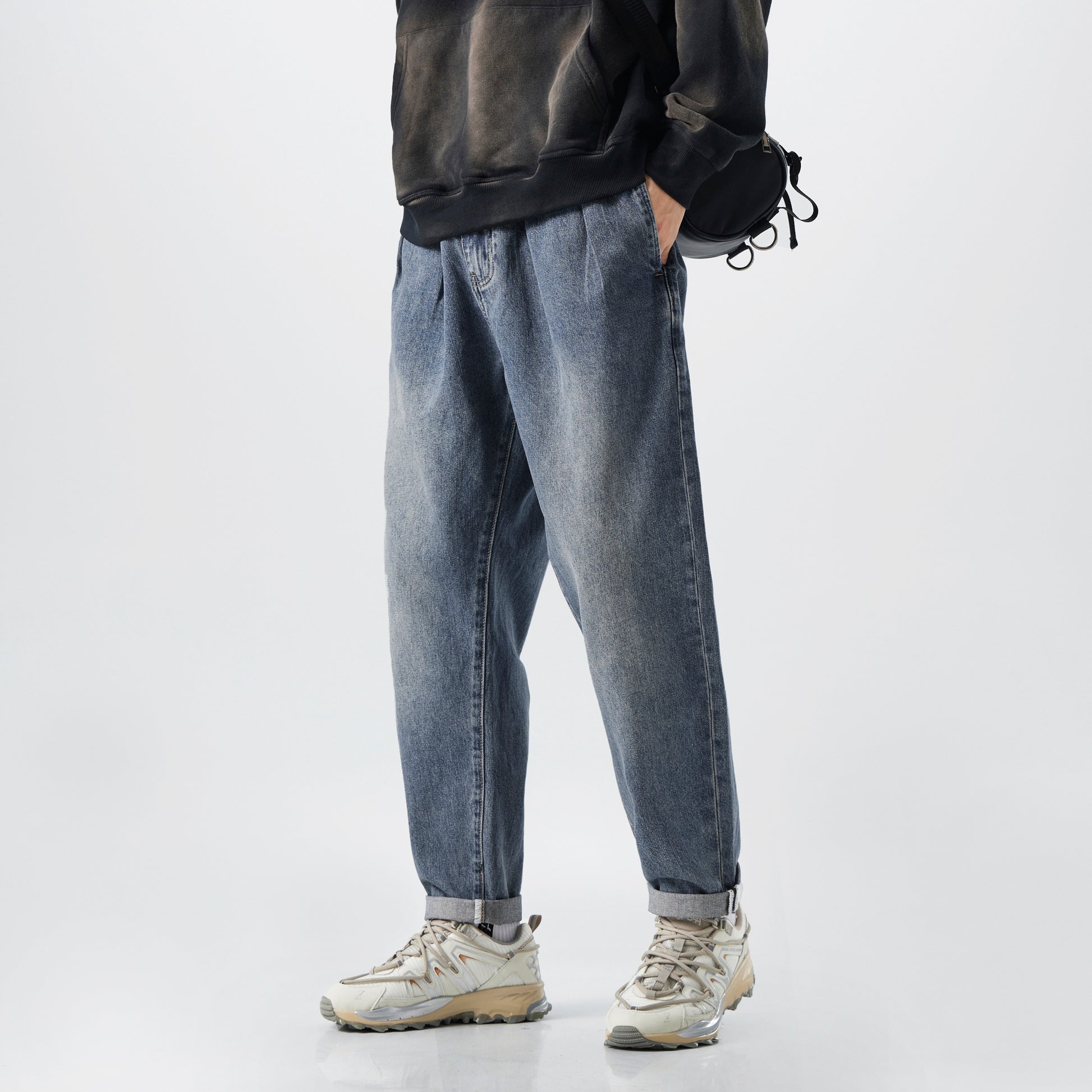 Herrbyxor med lös passform, avsmalnande ben och vikta fållar. En avslappnad modell för både vardags- och fritidsbruk.