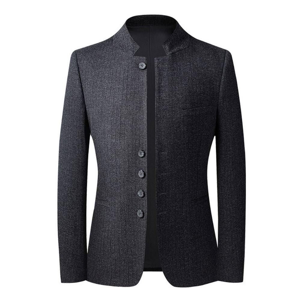 Herrkavaj med ståkrage, enkelknapp framtill och platt frontdesign. En elegant modell som passar för både affärs- och formella tillfällen.